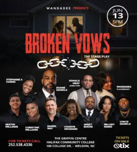 Broken Vows is a powerful and inspirational stage play about relationships, friendships, commitments, and the promises we make every day - neglect, loyalty, and the fight to hold it all together. When life pulls you in different directions, can you survive the test?
